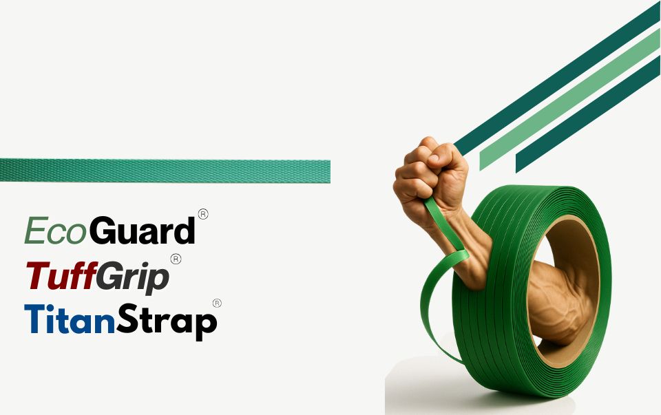 Polyester Strapping Colour - Green; Length - 4000FT Roll Weight - 25.1 Kg 28 rolls per skid